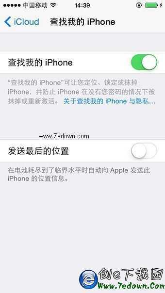 手機如果不幸丟失,功能可以迅速幫助我們找到手機當前的大致定位。然而,如果手機電量耗盡無法定位超過 24 小時後,就很難再追蹤具體的位置了。現在iOS8為“查找我的iPhone”提供了一個實用的小選項——“發送最後位置”,在“設置”——“iCloud”——“查找我的iPhone”中開啟這一選項,在電池接近耗盡時,iPhone會自動向蘋果發送其地理位置,並且在 24小時後仍可以查看。