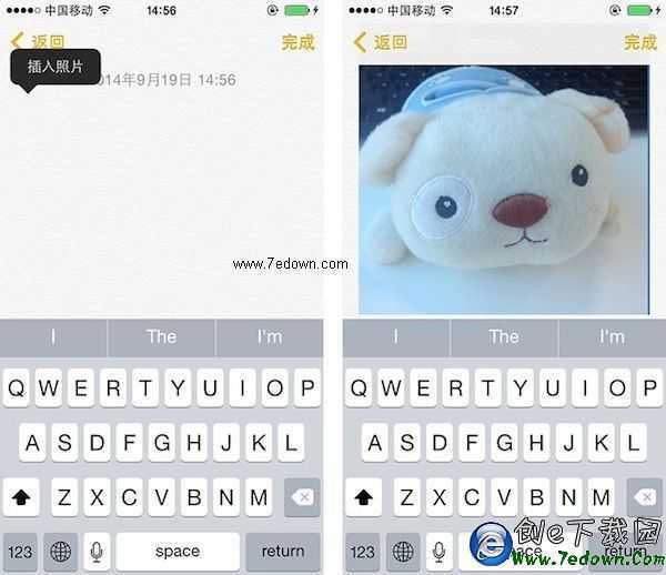 iOS裡的系統備忘錄是一個很實用的功能,支持iCloud自動同步,大家都可以隨手記一些文字也不易丟失。不過在iOS8之前都只支持文字,現在iOS8新增了支持添加圖片的功能,進入“備忘錄”長按時就會看到“插入照片”的選項了。