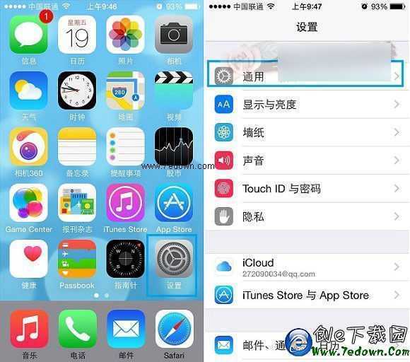 第四步:進入iOS8設置,然後進入“通用”設置,如下示意圖所示。