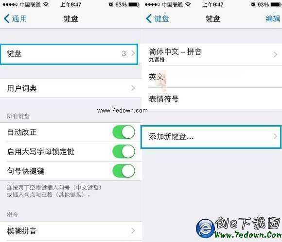 第五步:接下來在通過設置中,找到“鍵盤”設置,進入鍵盤設置後,再選擇“添加鍵盤”,如下圖所示: