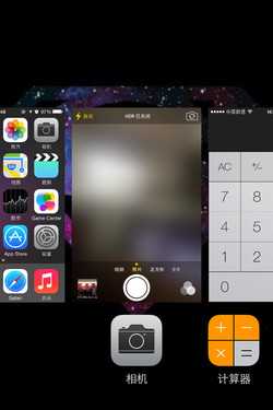 第二步:這時我們按兩下Home鍵就可以進入多任務管理界面,在這裡左或向右滑動界面,將相機應用調至中間位置。這時當我們抓到可以偷拍的畫面時,按音量鍵快速拍照。
