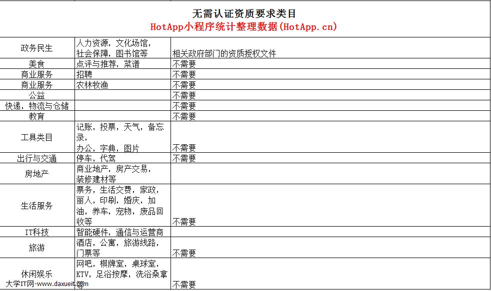 本文是對HotApp小程序服務范圍資質查詢器的講解,對學習IOS蘋果軟件開發有所幫助,與大家分享。 微信小程序提交審核需要選擇資質服務范圍,如果服務范圍不對,審核會不通過, 開發小程序之前,最好先查詢所開發小程序的資質范圍,否則無法通過微信審核。 小程序的資質范圍查詢地址,數據同步微信官方https://weixin.hotapp.cn/weixinmob