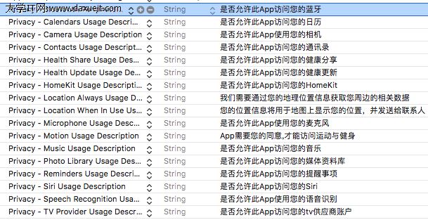 在項目工程配置文件info.plist添加時會自動提示的,截圖如下: