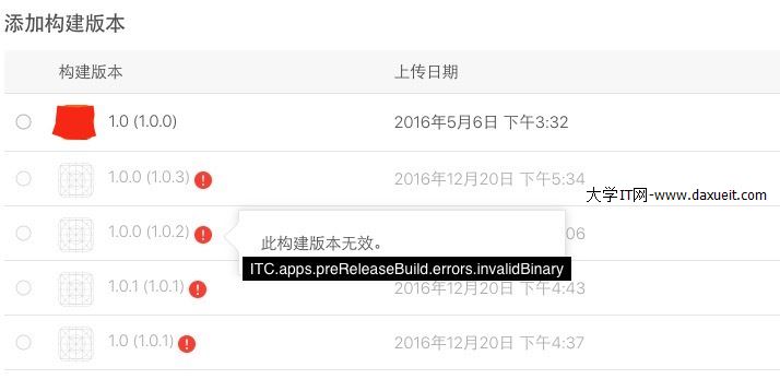 或者英文顯示為:ITC.apps.preReleaseBuild.errors.invalidBinary