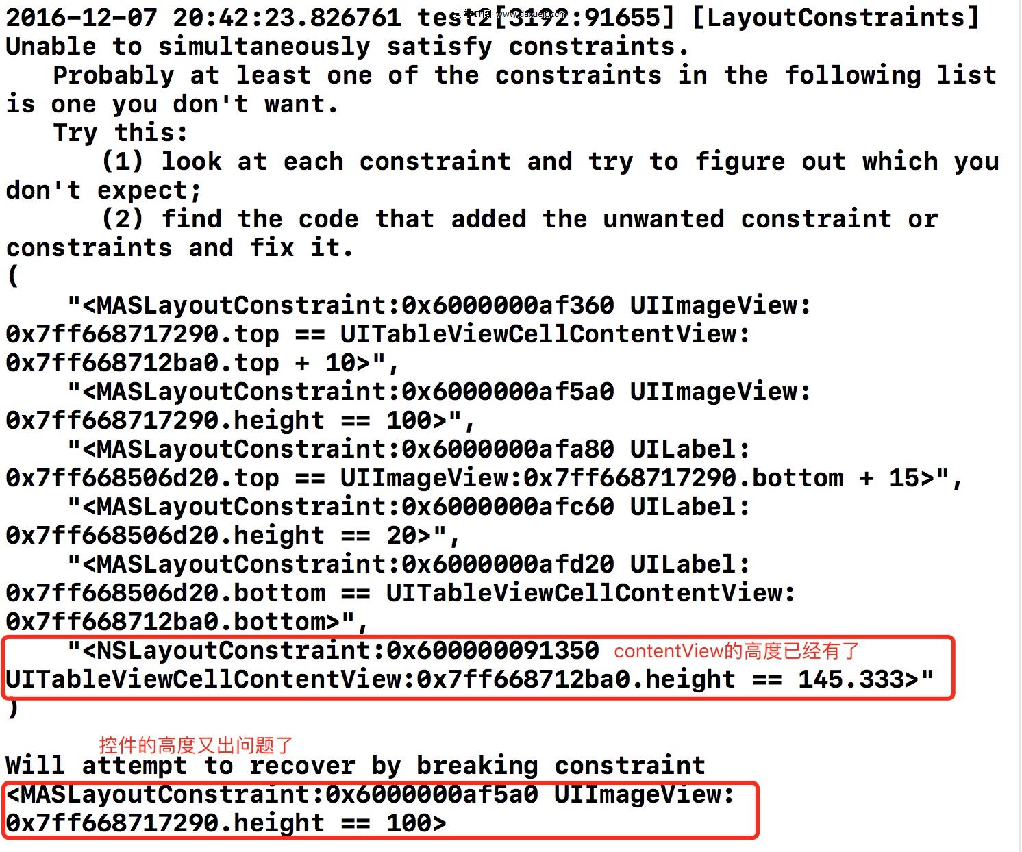 出處:http://blog.csdn.net/nb_token/article/details/53305414 Masonry可以設置約束的優先級,優先級分為priorityHigh,priorityMedium,priorityLow(高,中等,低)三個等級。優先級默認為中等,所以當我們對某一個控件的約束條件重復後,會打印警告信息,告訴我們應該去修復它們。 既然知道了警告的產生原因,那麼解決辦法有兩種: 1.找到該控件,修改它的相關約束,以消除警告信息。 2.將控件的約束優先級置為高級,那麼就算約束重復了也不會有警告。這也是最簡單省事的辦法。