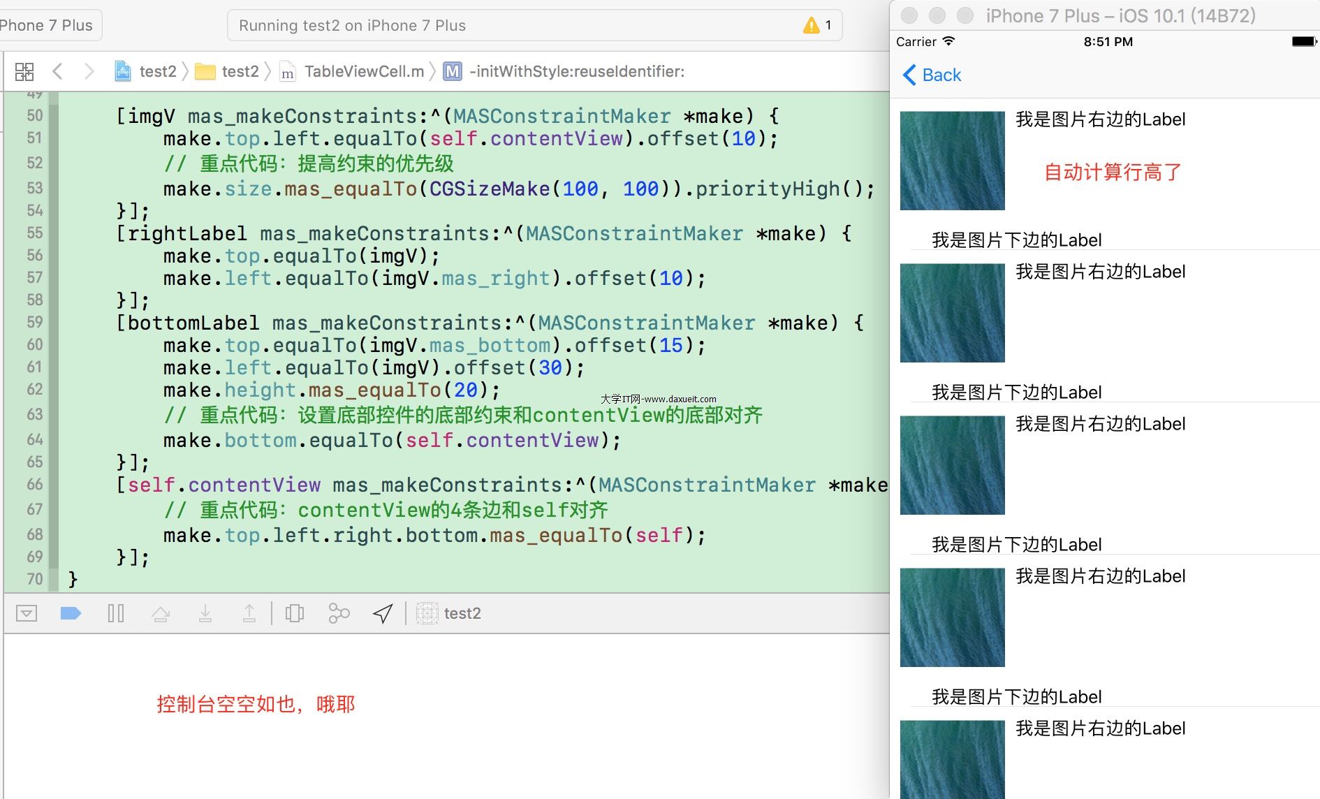 在cell裡,只要設置控件的高度(包括通過size)設置,就會沖突,我們需要提高約束的優先級。