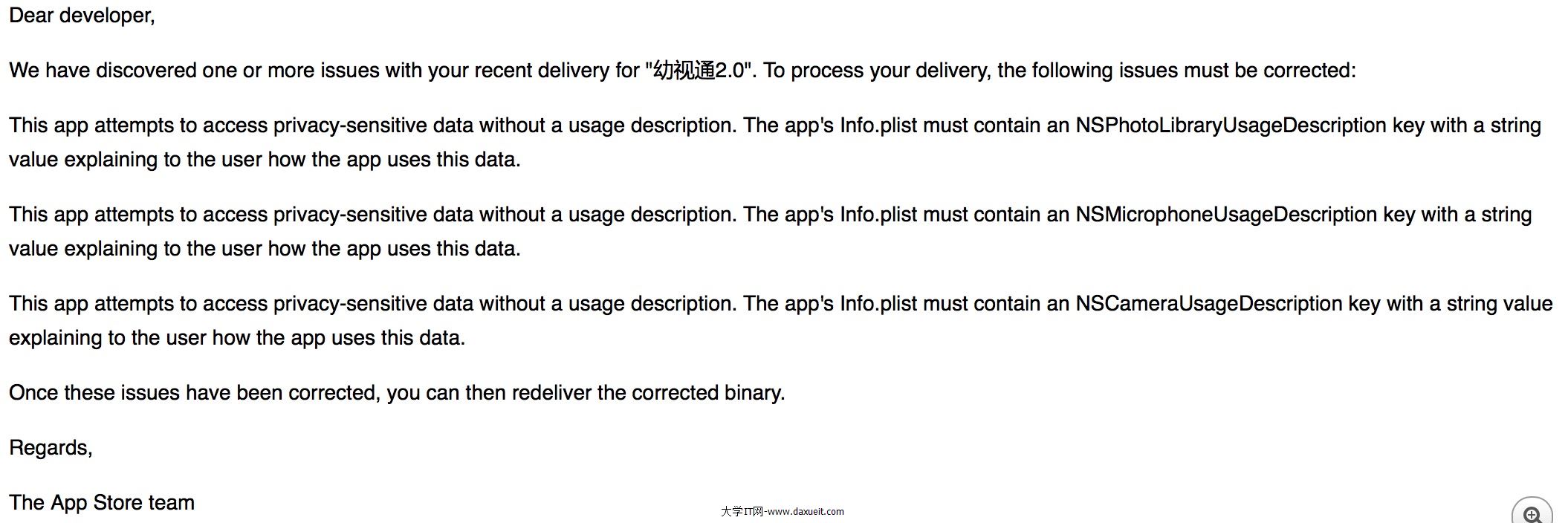 意思就是plist必須包含上面字符串的鍵值對向用戶解釋應用程序如何使用這些數據。