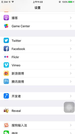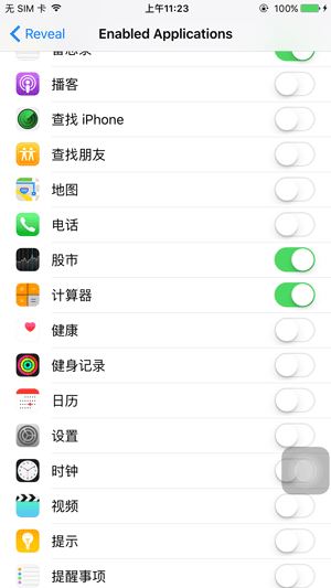 我們在越獄設備上安裝完Reveal Loader後就可以在設置中找到Reveal的配置項,在該配置項中我們可以去選擇要Reveal的App, 當然對於越獄手機,手機上安裝的所有App都可以Reveal。當然也包括從AppStore下載的,也包括iOS系統自帶的。如下所示: