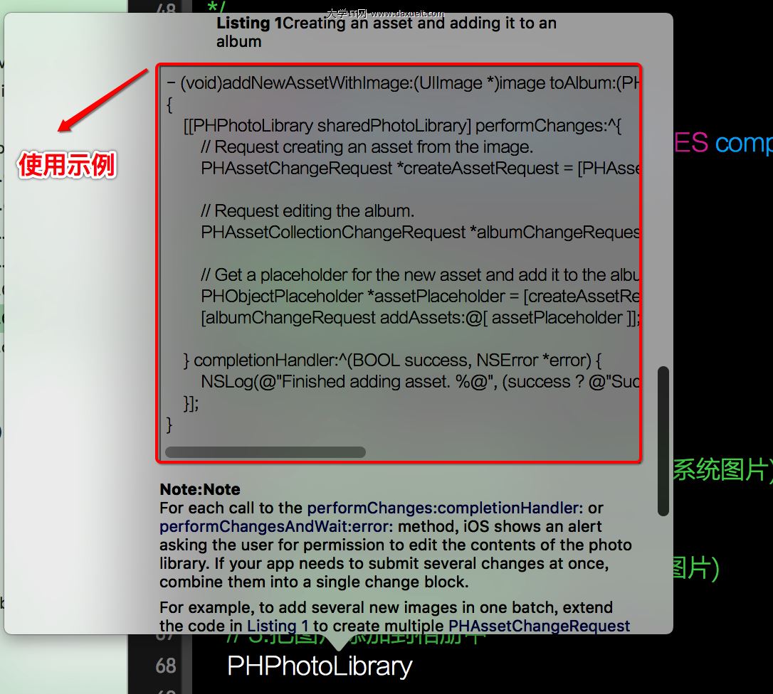 54 //因為creationRequestForAssetFromImage方法是異步實行的,在這裡不能保證 assetCreationRequest有值