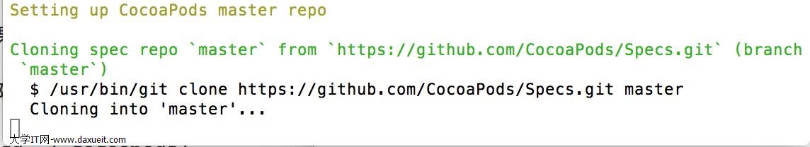 在終端 輸入pod setup 之後 你會發現 一直沒有反應 會出現這種情況 如下圖 你要耐心等一下。