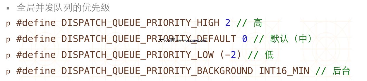 dispatch_queue_priority_t priority, // 隊列的優先級