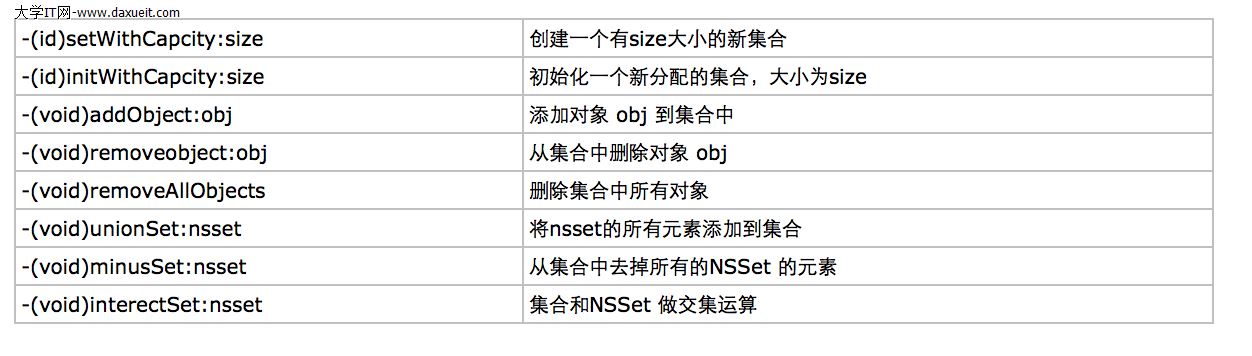 NSSet到底什麼類型,其實它和NSArray功能性質一樣,用於存儲對象,屬於集合;NSSet , NSMutableSet類聲明編程接口對象,無序的集合,在內存中存儲方式是不連續的,不像NSArray(是有序的集合)類聲明編程接口對象是有序集合,在內存中存儲位置是連續的;