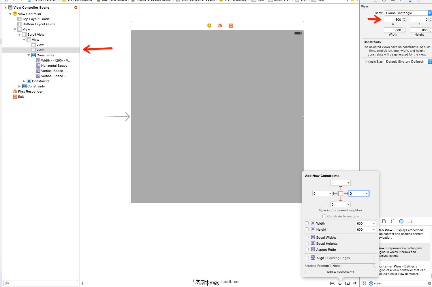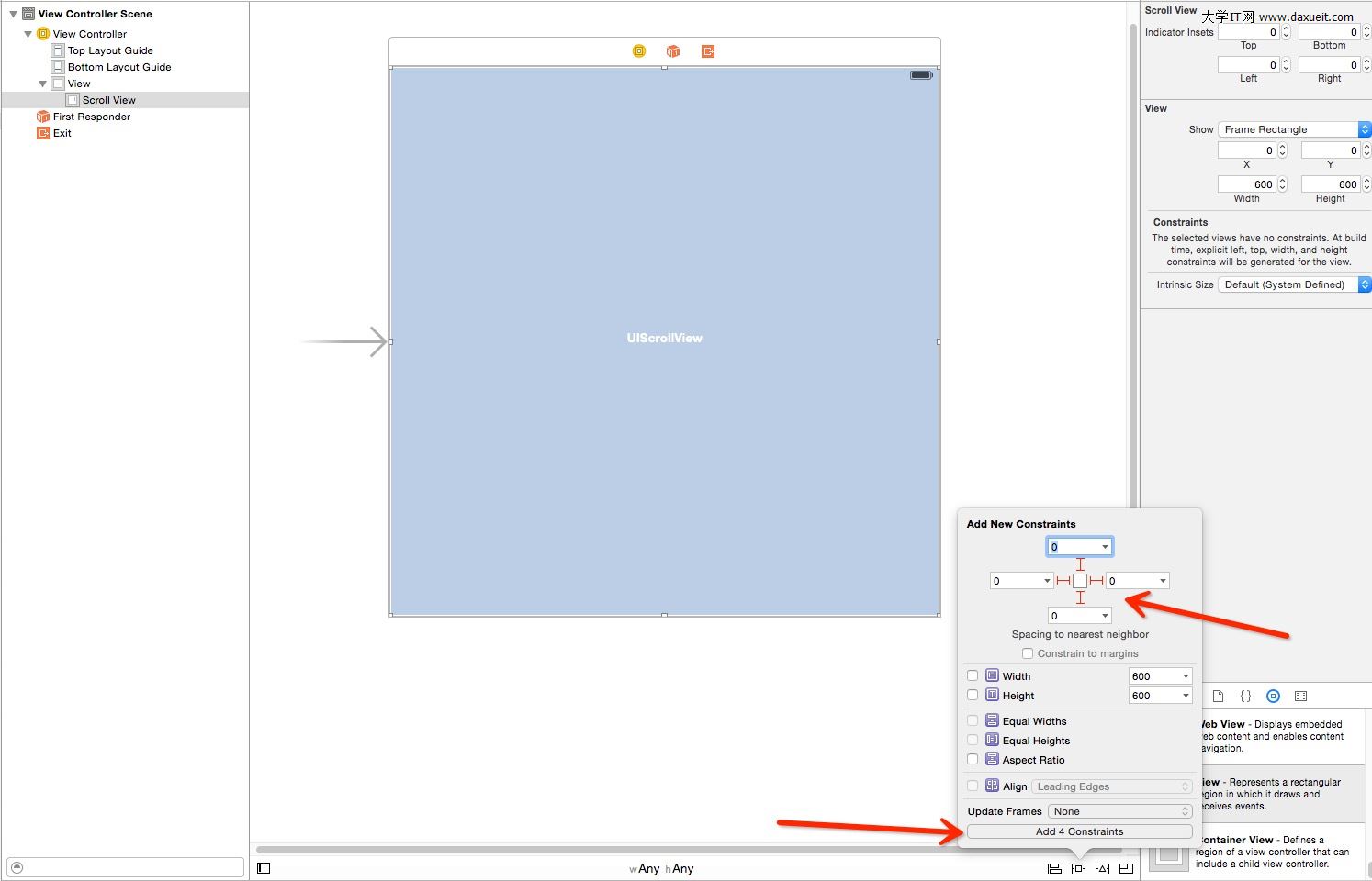2. 選中ScrollView,添加約束。