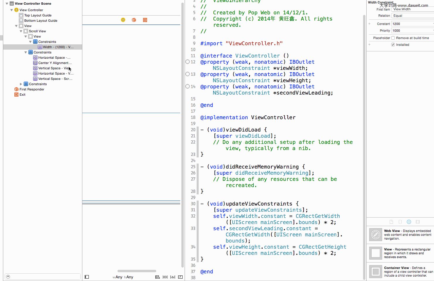 8.如果是想要動態設置ScrollView的寬度,也就是設置View的寬度約束的值, 我們將其拉成屬性, 然後修改其值。