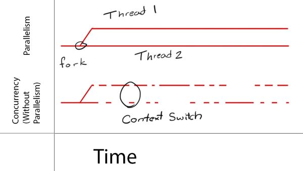 補充:並發代碼的不同部分可以“同步”執行。然而,該怎樣發生或是否發生都取決於系統。多核設備通過並行來同時執行多個線程;然而,為了使單核設備也能實現這一點,它們必須先運行一個線程,執行一個上下文切換,然後運行另一個線程或進程。這通常發生地足夠快以致給我們並發執行地錯覺,如下圖所示: