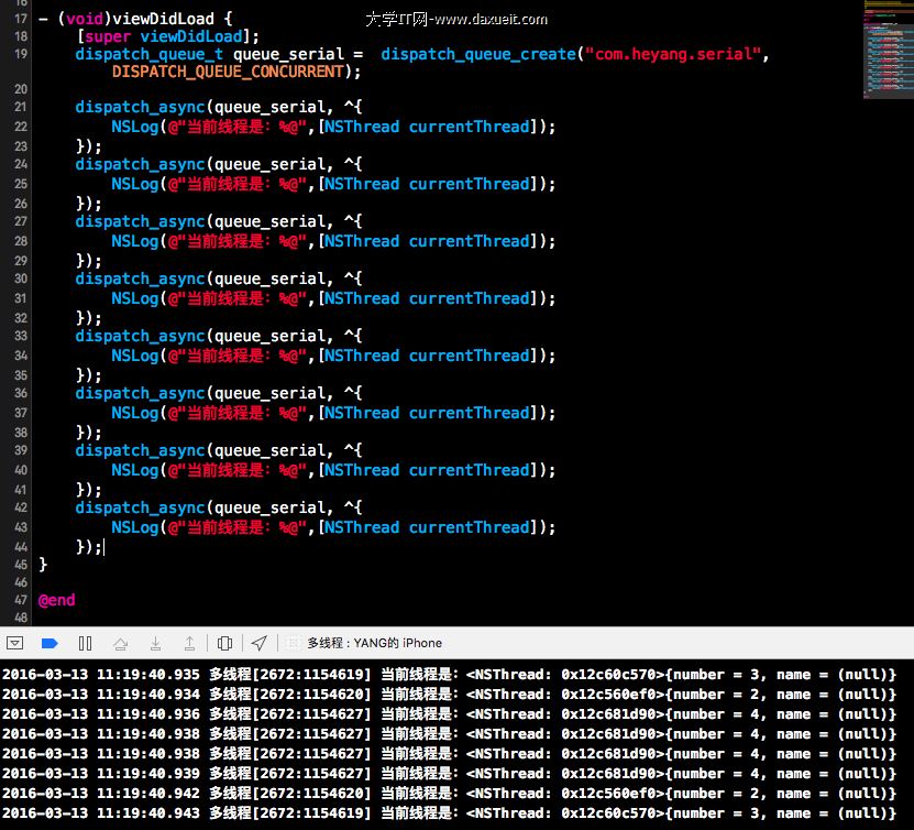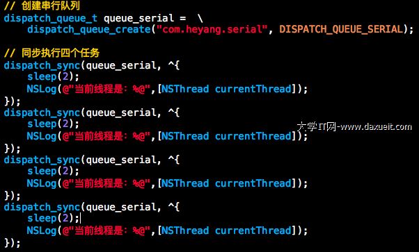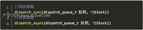 這裡會有兩個東西要說:同步函數和異步函數。我們的C語言基礎就學了函數,函數用大括號包含了一段代碼塊,當這個函數執行完畢就會返回,可以是返回void或者返回具體某個數據值,同時也代表著這個函數的執行完畢。那麼線程中的函數,當然是包含了任務的,這個任務就是閉包或者叫block。同步函數和異步函數的區別就在,同步函數需要在完成了它預定的任務後才返回,而異步函數會立即返回,也就是說異步函數預定的任務會完成但不會等它完成就立即返回。