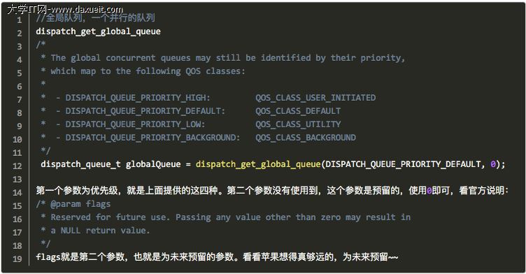 在使用全局並發隊列時,我們只通過dispatch_get_global_queue方法來獲取即可,我們不需要管理其引用。