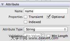 選中新添加的屬性,對屬性進行命名,並設置屬性的數據類型Attribute Type