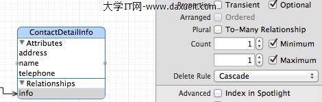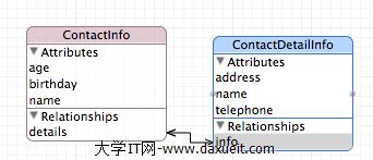 其中,可以通過NSManagedObject數據記錄對象裡關聯的屬性,查詢另一個數據記錄對象裡的屬性