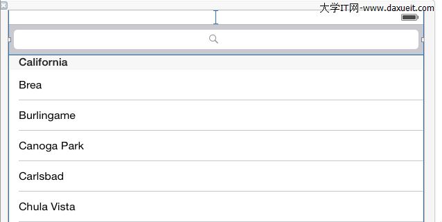 先在視圖xib文件中添加tableView,在表上面添加SearchBar和SearchDisplayController.如圖: