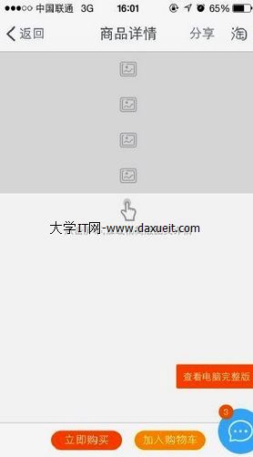 例如淘寶APP,當網絡切換到GPRS或3G的時候,首先會提醒用戶網絡變化,然後查看商品詳情的時候,圖片從自動下載,變換成點擊加載,並且加載的只是精簡版圖文詳情,防止多圖造成的流浪浪費。