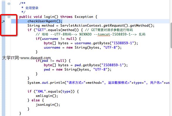 在服務器代碼的登錄方法中設置斷點