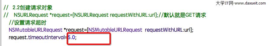 設置請求超時等待時間(超過這個時間就算超時,請求失敗)- (void)setTimeoutInterval:(NSTimeInterval)seconds;