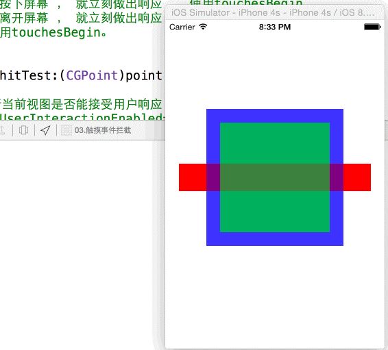 不接收用戶交互:userInterfactionEnable = no; 隱藏: hidden = yes; 透明:alpha = 0~ 0.01