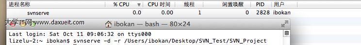 2,在Mac下有自帶的svn服務功能(Windows下是沒有的),直接在終端打開svn的服務即可,在打開服務的同時指定svn的工作路徑