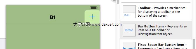 (1)用storyboard來為我們的Navigation Bar添加按鈕,拖拽完按鈕再進行相關屬性配置即可