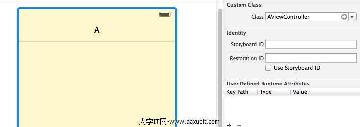 2.如何給我們新建的視圖控制器關聯我們新建的視圖控制器類呢?其實在我們storyboard中還是蠻簡單的,在storyboard選擇我們要關聯的視圖控制器,在 Class中選中我們新建的視圖控制器類即可。關聯完以後我們就可以在相應的試圖控制器類中實現我們的業務邏輯啦,操作如下: