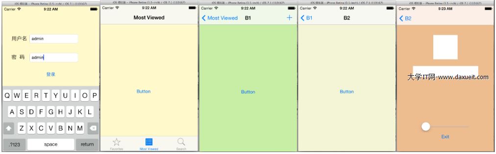 1.當打開時首先會出現一個登陸頁面,當登陸成功後會跳轉到Tab Bar Controller中。