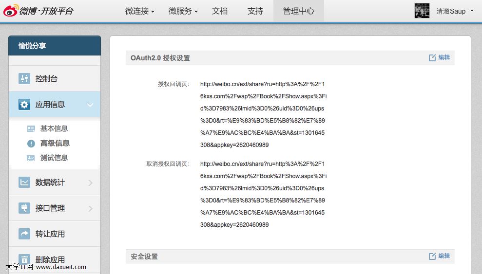 回調地址去新浪開發者平台獲取
