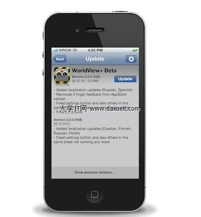 - 默認當App啟動或喚醒時,客戶端會從服務器檢測更新,用戶可以在設置對話框中修改這個設置:一天一次或手動檢測更新