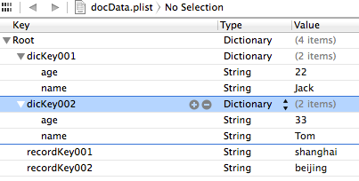 [plistDic setObject:@"beijing" forKey:@"recordKey002"];
