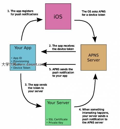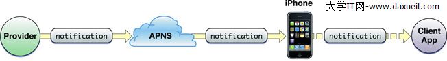 5、APNS服務將消息發送給iPhone應用程序。