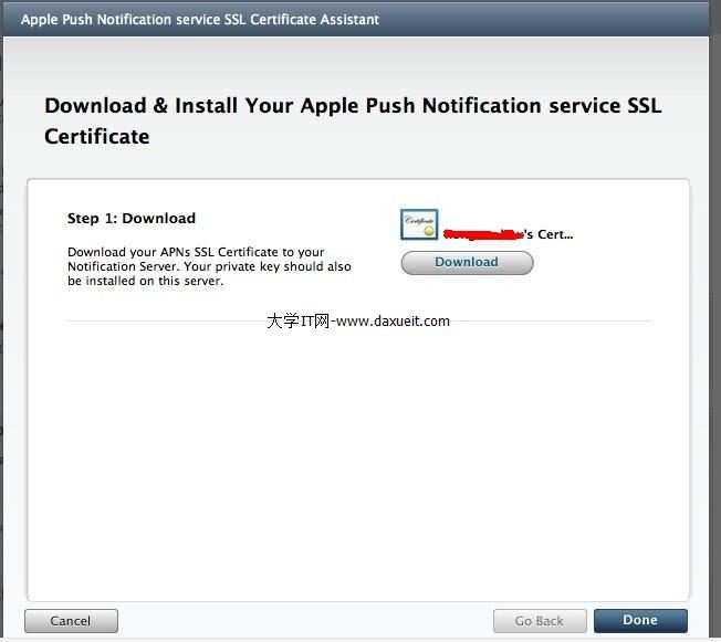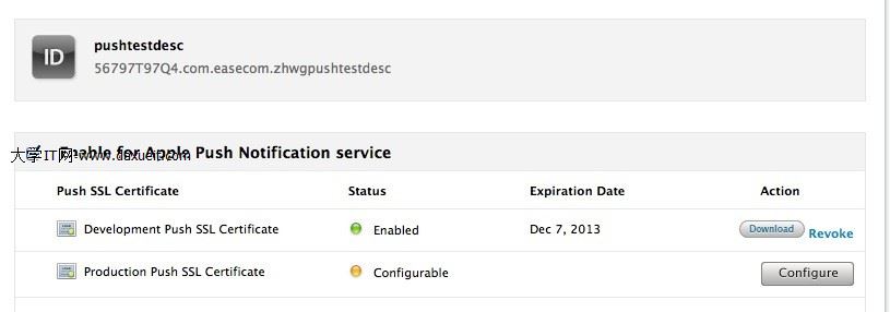 點擊Download,下載生成的支持推送服務的證書(命名為:aps_development-6.cer)。