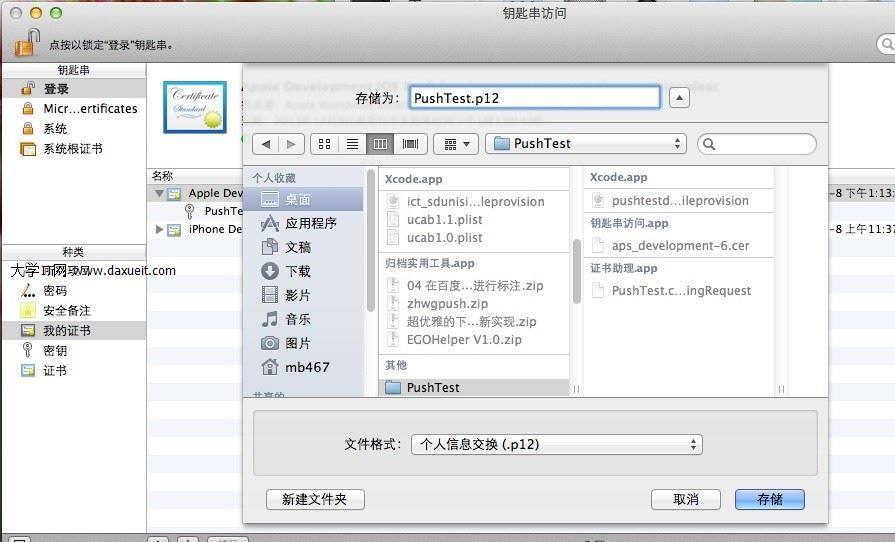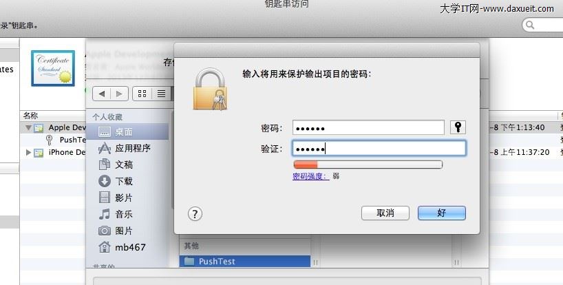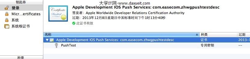 導出PushTest.p12證書完畢。