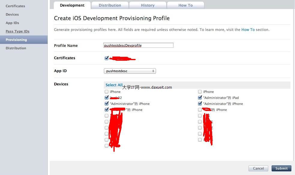 三、准備profile證書,因為推送消息只能在真機上測試,所以要建一個profile證書