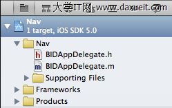 #import <UIKit/UIKit.h> @interface BIDAppDelegate : UIResponder <UIApplicationDelegate> @property (strong, nonatomic) UIWindow *window; @property (strong, nonatomic) UINavigationController *navController; @end我們添加了一個UINavigationController的對象,接著打開BIDAppDelegate.m,添加如下code