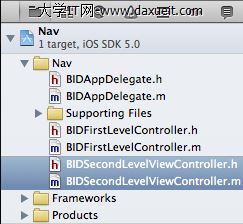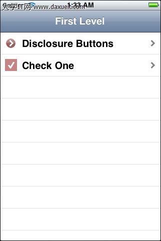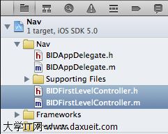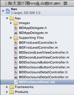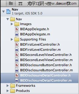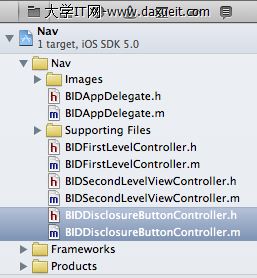 最後一步,修改BIDFirstLevelController,將BIDDisclosureButtonController添加進去,打開BIDFirstLevelController.m,添加如下代碼