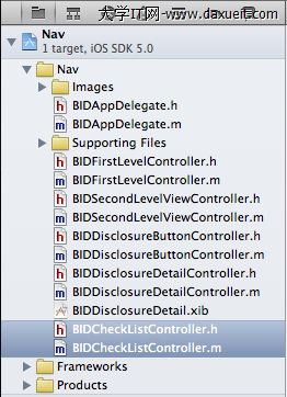 最後一步,修改BIDFirstLevelController,將BIDCheckListController添加進去,打開BIDFirstLevelController.m,添加如下代碼