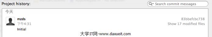 好了,當前工作區是干淨的,代碼都已經提交完畢了。我們可以用Xcode提交代碼,也可以用命令來提交,但是用命令行的話可以做的事情更多一些。使用Xcode可以查看提交的歷史紀錄,Source Control->History: