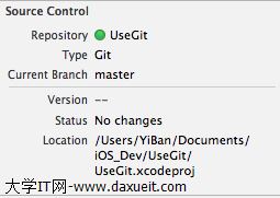 這說明使用Source Control,會默認在工程中創建git repository。然後工程新建完成後,會在右側邊欄看到這些信息,說明已經啟用Source Control