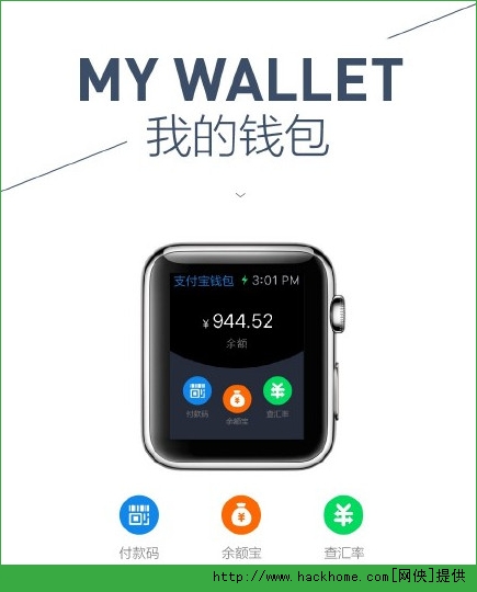 顯然, Apple Wathc上使用支付寶只能是被閹割之後的功能,所以在此版本中,支付寶錢包將提供余額寶、付款碼和匯率查詢三項功能,以滿足Apple Watch用戶的需求。