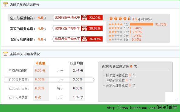NO,請繼續保持頭腦清醒,最後要考察的是賣家的綜合參數。關鍵是看退款的情況,如果有兩次以上是因為質量問題退款的,直接放棄,綜合參數裡也可以看到整個店的差評率、罰款率什麼的,也可以最為參考依據,這是第五個篩選條件。