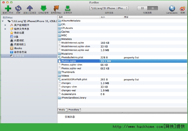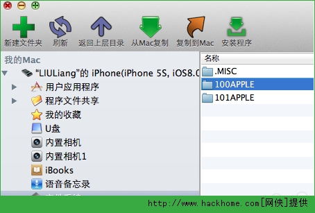 1. 打開iFunBox選擇“文件系統”,找到“DICM”文件夾,點擊進入,裡邊有個“100APPLE”文件夾,這裡就是“相機膠卷”文件夾。