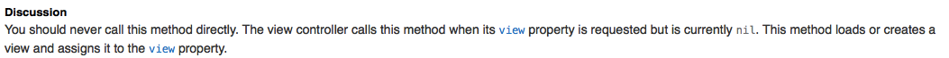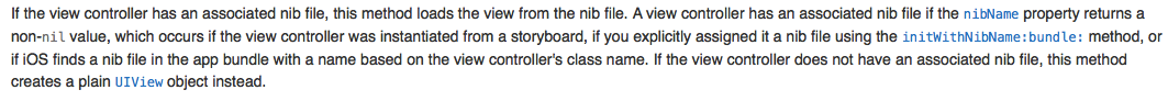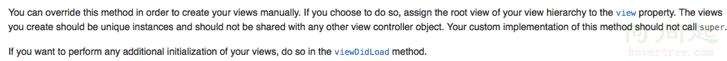 文檔上說:當控制器的view為nil時,會調用這個方法,這個方法會創建一個view給控制器.