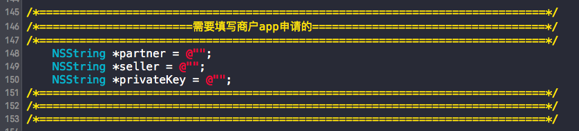 從上面圖中的148、149、150行代碼,我們可以看到,我們需要三個參數的值:partner、seller、privateKey。