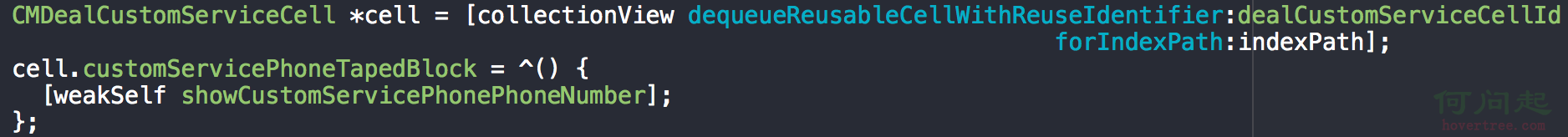 使用block需要注意避免引用循環造成內存問題,如圖所示,對於strong屬性的property或者復用的cell,都是被self持有或者說強引用的,在使用block回調前,需要將self聲明為一個weak類型的weakSelf再進行使用,否則將造成引用循環。